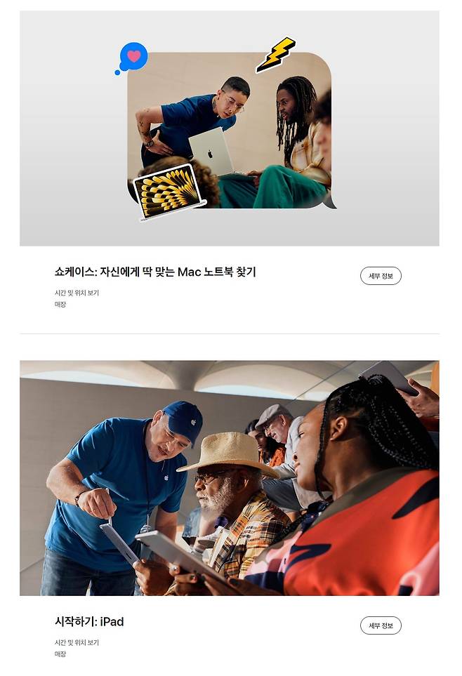 자신에게 딱 맞는 맥북 선택하기부터 맥 아이패드로 효과적인 프레젠테이션 만들기, 아이패드에서 애플펜슬로 드로잉하기, 아이패드의 프로크리에트 앱에서 그림을 그리는 방법 등 다양한 활용법을 애플스토어에서 무료로 교육 받을 수 있습니다.