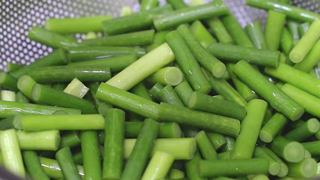 이 과정을 거치고 난 마늘쫑은 색도 선명해지고, 아삭함은 살아나 더욱 맛있게 즐길 수 있답니다.
