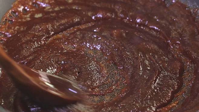 양념장이 보글보글 끓어오를 때까지 계속해서 저어가며 끓이세요.