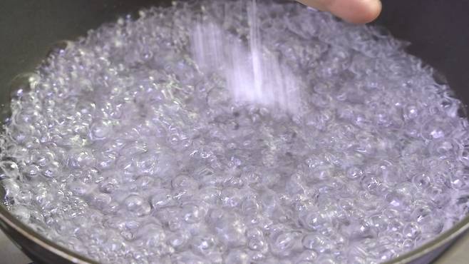 팔팔 끓는 물에 소금을 조금만 넣으세요.