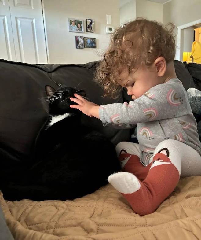 낯선 자극에 민감한 고양이지만 젤다에겐 늘 조심스럽고 인내심 깊은 태도를 보인다.