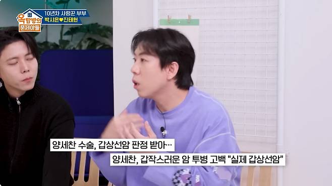 지난달 KBS 예능 ‘옥탑방의 문제아들’에 출연한 양세찬이 갑상선암의 동병상련을 겪은 진태현과 공감대를 나눴다.