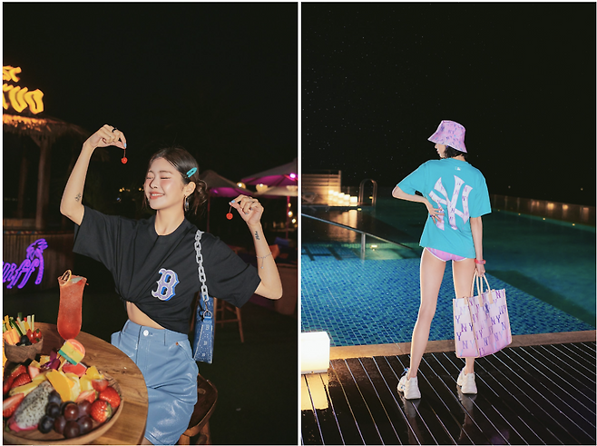 MLB 모노그램 비키니와 빅 로고 반팔티를 매치해