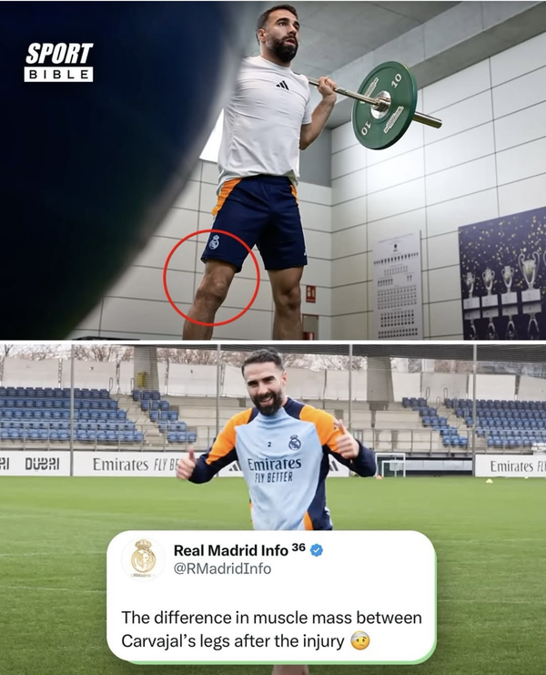 동시에 카르바할의 훈련 장면이 공개됐는데, 확연히 부상당한 다리가 앙상해진 모습이었다. 영국 ‘스포츠 바이블’은 카르바할의 사진을 게재하며 “레알 팬들은 카르바할이 6개월 전 당한 ACL 부상에서 회복한 후, 그의 다리에 큰 변화가 생긴 것을 포착했다. 그러나 카르바할은 복귀를 준비하며 밝은 모습을 보였다”고 설명했다.