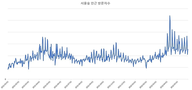 성수동 카페거리에 힘입어 주변지역들, 특히 서울숲 인근의 유동인구도 최근 증가세를 보입니다.