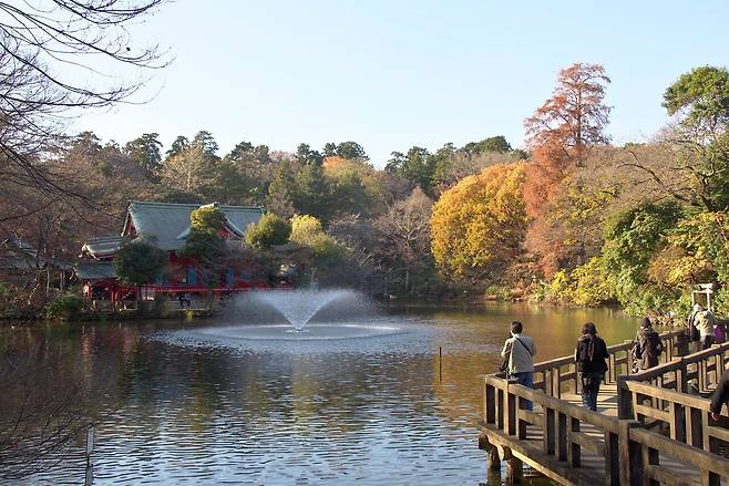 봄이면 약 500그루의 커다란 벚나무가 호수와 어우러지고, 가을이되면 단풍나무가 화려함의 극치를 선사하여 <일본 벚꽃 명소 100선>에 선정되어 있는 곳이기도 하죠. 공원 안에는 오리배를 탈 수 있는 연못을 비롯해 동물원과 수족관, 벤자이텐 신사, 지브리 미술관 등이 있어 볼거리와 체험이 넘쳐납니다.