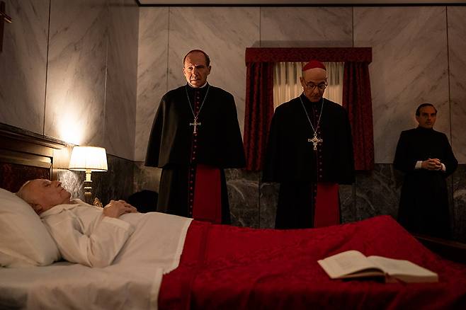 그리고 이 과정에서 예상치 못한 인물이 등장해 선거에 변수로 떠오르게 되면서 이야기는 더욱 흥미를 자아낸다. 그 과정에서 스릴러 영화 특유의 반전의 반전이 자연스럽게 연결되는데, 스릴러적인 정서를 좋아하는 이라면 이야기가 더 쉽게 다가올 것이다. 이처럼 자극적인 소재 없이 콘클라베 과정에서 발생하는 충돌, 대립, 음모를 비추면서 영화의 메시지인 세상과의 화합, 인간의 본모습, 종교적 메시지가 무난하게 전달된다. 밀폐된 추기경들의 세계지만 영락없는 세상의 모습이라는 것을 보여주면서 그 안에 담긴 화합과 평화를 이야기하는 과정을 종교적 관념으로 담아낸 대목이 무난하게 전달된다. 어려운 주제관 없이 이야기 속에 메시지를 잘 버무리면서 '콘클라베'는 부담 없이 볼 수 있는 명품 영화만의 면모를 보여준다.