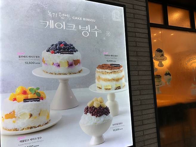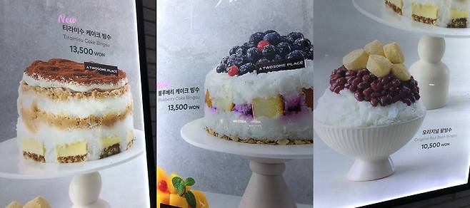 티라미수 케이크 빙수, 블루베리 케이크 빙수, 오리지널 팥빙수 등의 메뉴가 판매되고 있어요. 취향대로 골라먹기 좋네요.