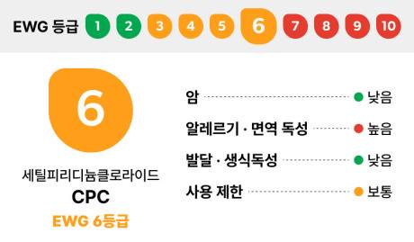 또한, 지속적으로 피부에 접촉하게 되면 발진 혹은 화상까지 생길 수 있기 때문에 EWG등급에서 6등급 판정을 받았습니다.