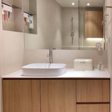 단점은 뼈대 작업이 추가로 들어가기 때문에 시공 비용이 다른 세면대보다 높다는 것이다. 마지막으로 세면대 높이도 반드시 체크해야 한다. 일반적인 세면대 높이는 바닥에서 80~85cm인데, 키가 큰 사람은 이 높이에서 매일 허리를 숙여야 하는 불편이 생긴다. 세면대 교체 시 사용자의 키에 맞춰 높이 조정이 가능하니 설치 전에 시공자에게 반드시 요청하는 것이 좋다. 1~2cm 차이가 매일의 편안함을 결정한다.