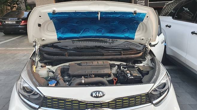 본닛을 열고 엔진 옆 연료 호스를 따라가며 손가락으로 살짝 흔들어본다.