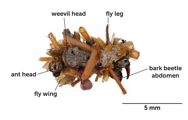 다른 곤충의 사체 일부를 몸에 붙여 위장하는 애벌레에 관심이 쏠렸다. 본 콜렉터(bone collector)라는 별칭이 붙은 이 애벌레는 개미나 파리, 바구미 등 다양한 곤충의 사체 일부로 몸을 치장하는 희한한 습관을 가졌다.