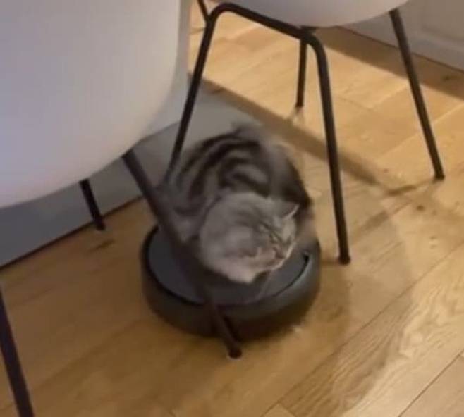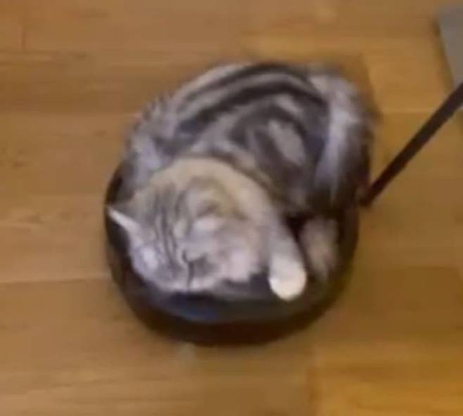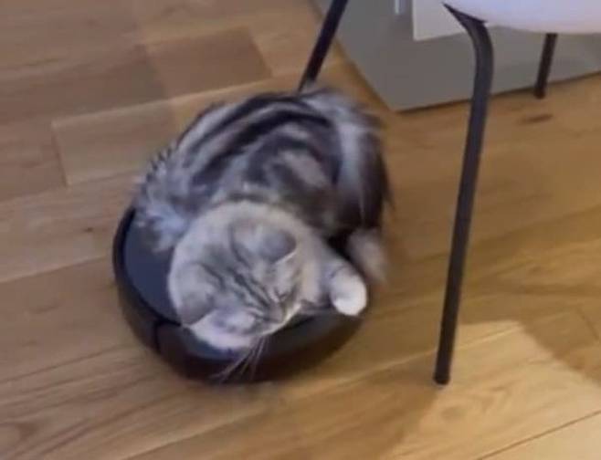사연은 이렇습니다. SNS상에는 집안을 돌아다니며 청소하는 중인 로봇 청소기를 피하기는 커녕 오히려 그 위에 올라가 여유를 즐기는 고양이 영상이 올라온 것.