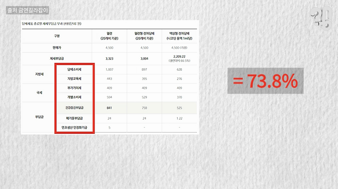 높은 매출 비중을 차지하는 담배지만 사실 마진은 그리 좋지 않아서 ‘계륵’ 같은 존재라고도 한다. 담배에 부과되는 세금은 7가지나 되는데 궐련형 담배를 기준으로 무려 73.8%.