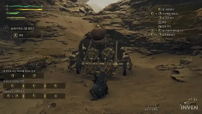 몬스터를 공격하는 것 외에 연기 게이지를 모으는 새로운 방법이 추가됐습니다. 기인베기 키를 누르고 있으면 기인모으기라고 해서 연기 게이지가 모이게 되는데 차지 시간에 기인베기, 기인 큰회전베기 등으로 파생할 수 있습니다. 연기 게이지를 좀 더 빨리 채울 수 있게 된 셈입니다.