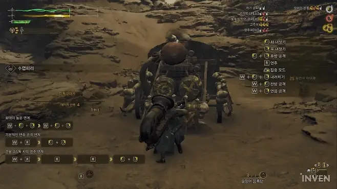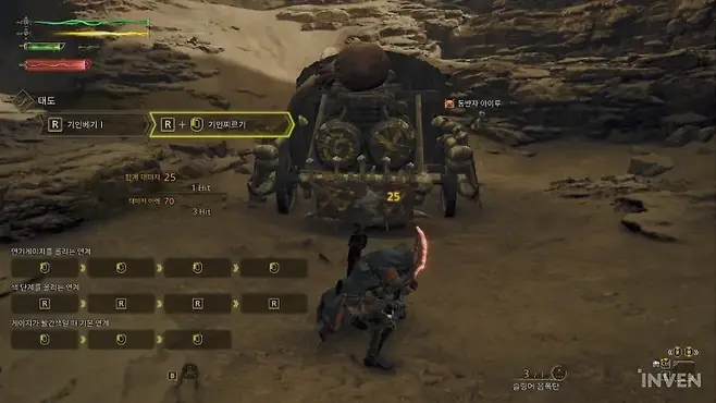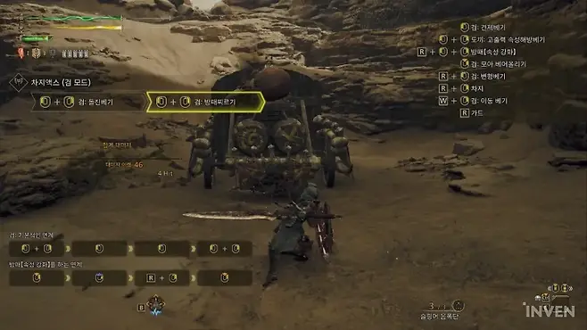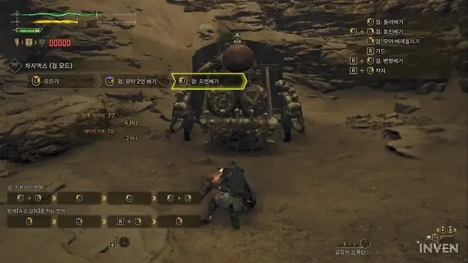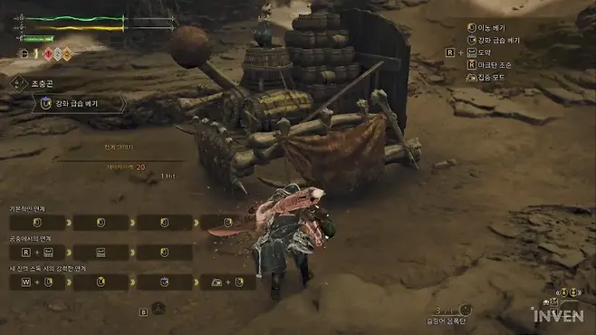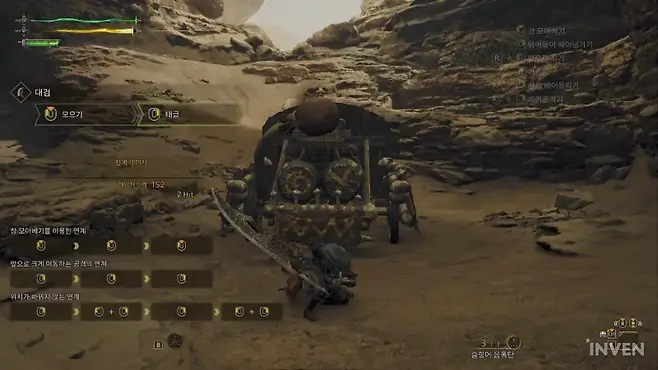 '몬헌 와일즈'에서는 그랬던 대검의 운용에도 변화가 생겼습니다. 참 모아베기가 전작들에 비해 약해진 건데요. 덕분에 새로운 운용법으로 강 모아베기3에서 이어지는 강 베어넘기기 콤보가 새롭게 대두되고 있습니다. 사용법은 간단합니다. 강 모아베기 직후 베어넘기기를 쓰면 됩니다. 핵심은 차지 단계를 이어받는다는 부분인데요. 모아베기를 쓰면 1단계 강 베어넘기기가, 강 모아베기를 쓰면 2단계 강 베어넘기기가 나가는 식입니다.