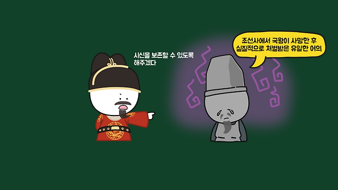 이에 관련된 책임자들에 대한 처벌이 시작됐고, 효종 사망 후 즉위한 현종은 직접적인 사망 책임이 있는 신가귀에게 왕명에 따른 것이고, 과거 공로도 있으니 칼로 베어 죽이는 참형 대신 목을 졸라 죽이되 시신을 보존할 수 있는 교형으로 생을 마감하도록 해주었습니다. 그리고 이외의 의관들은 곤장형과 유배형만 내리는 선에서 처벌을 마무리합니다.