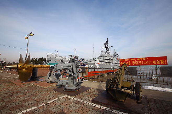삽교호 관광지의 또 다른 명소인 함상공원은 놀이동산에서 가깝습니다. 실제로 운항되던 군함을 개조해 전시하고 있어, 아이들이 색다른 체험을 할 수 있는 곳입니다. 다만, 내부로 들어가려면 별도 이용료가 있을 수 있으니 미리 알아보는 것이 좋습니다.