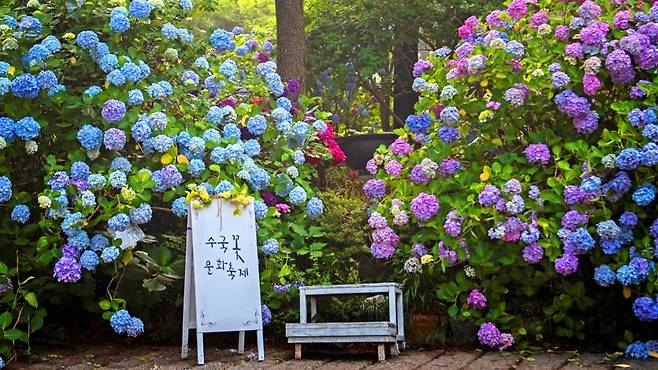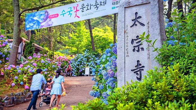 태종사 일대에는 30여 종, 4천여 그루의 수국이 정성스레 가꿔져 있으며, 특히 올해는 수국의 작황이 뛰어나 개화 시기에 맞춰 축제 일정도 최적화되었다.