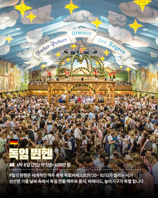 특히 평균 15도 안팎의 쾌적한 날씨에 맞춰 노이슈반슈타인 성이나 알프스 일일투어를 곁들이면 9월 해외여행의 낭만을 배가할 수 있습니다.