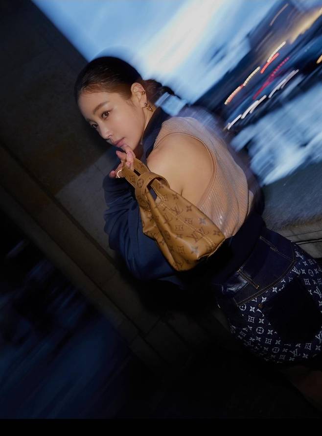 또, 기은세는 클래식한 모노그램 패턴이 돋보이는 쇼트 팬츠로 스타일리시하고 고급스러운 분위기의 스타일을 선보였습니다.