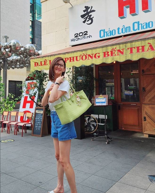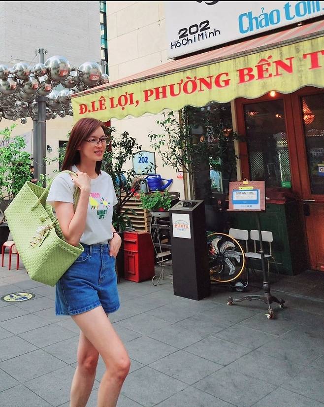 또 정가은은 블루데님 쇼츠를 매치해 다리를 길어 보이게 하는 효과를 주며 쭉 뻗은 각선미를 자랑했습니다.
