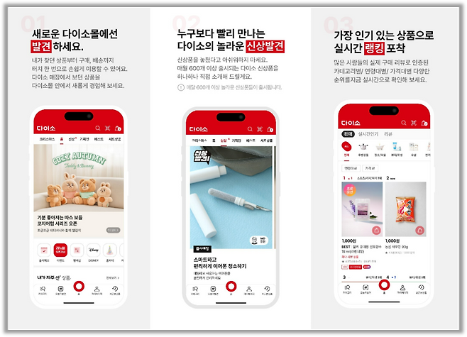 뿐만 아니라 다이소는 매월 600여 개에 달하는 신상품을 출시하고 있어. 그만큼 다른 곳과는 달리 수많은 제품들을 만나볼 수 있는 거야. 특히 같은 카테고리더라도 매주, 매월, 매년 접할 수 있는 제품이 달라지니까 소비자는 더욱 자주 다이소를 방문할 수 밖에 없는 거지.