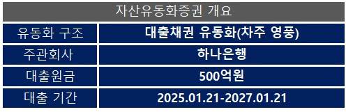 영풍은 500억원을 만기일인 2027년 1월21일에 돌려주면 된다. 롱리치하나제일차는 영풍이 대출채권을 갚기까지 3개월마다 ABCP를 투자자에 판매하게 되며, 시장에서 ABCP를 인수하겠다는 투자자가 없으면 하나은행이 이를 매입하기로 했다. 하나은행은 이 증권의 주관회사다.