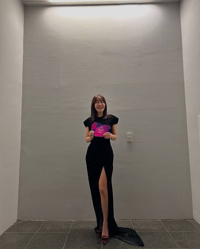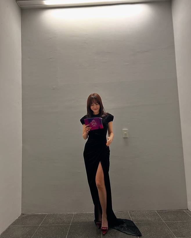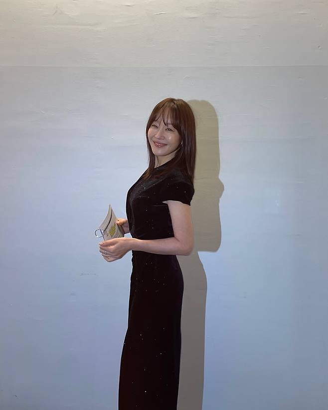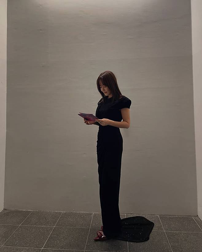 엄지원의 이번 룩은 블랙 벨벳 드레스가 주는 깊이 있는 우아함이 핵심이에요.