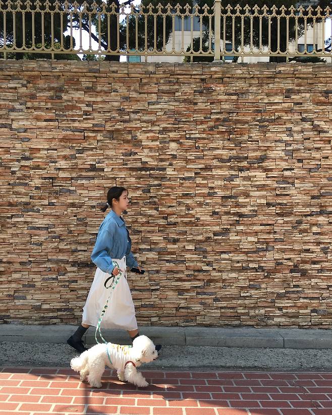 사랑스러운 반려견과 함께한 데일리룩 속 박나언의 스타일은 가볍지만 센스 있는 레이어드가 돋보입니다.