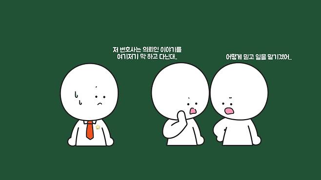 변호사는 일상적인 법률 자문을 위해 찾는 경우도 있으나 대부분은 감당하기 어려운 법적 문제나 분쟁 해결에 도움을 받기 위해 찾습니다. 찾아가서 사건의 개요를 설명할 텐데, 의뢰인은 자신에게 불리한 내용이나 사적인 비밀은 숨기려는 경향이 있습니다.