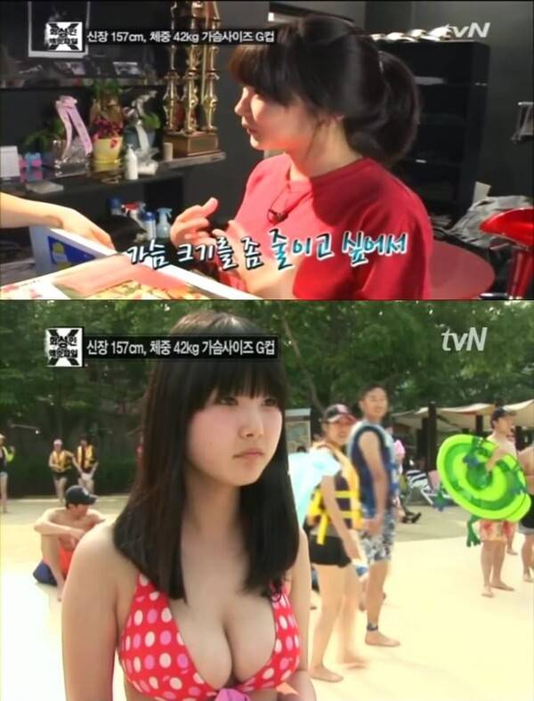 2011년 'G컵녀'로 등장한 김은영은 당시 방송에서 몸에 비해 큰 가슴 때문에 힘들다는 고민을 털어놓았습니다. 157cm의 키에 42kg으로 왜소한 체형임에도 불구하고 G컵의 가슴 크기 때문에 몸매에 집중되는 시선이 부담스럽다는 고민이었는데요, 실제로 대학시절 한 남자선배는 "내가 가슴 느껴지게 안겨봐"라며 성희롱을 하기도 했다고 합니다.