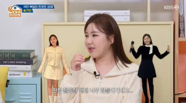 지난 17일 방송된 KBS 2TV ‘옥탑방의 문제아들’에서 송가인은 “밥을 먹을 시간이 없었다”며 “스케줄이 고돼 자연스럽게 살이 빠졌다”고 밝혔다.