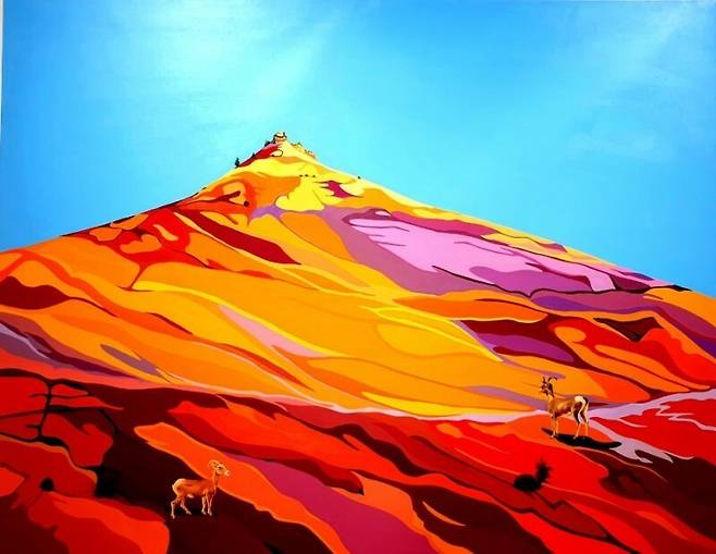 “내 작품(음악/그림)을 보는 객관화된 모습들 속에서 내가 좋으면 타인도 좋아할 것 같은 느낌을 받는다. 그것이 직관을 믿고 붓 가는 대로 그리는 이유다. 그림 속 동물은 나 자신의 모습이다. 만나기도 하고 헤어지기도 하는 인연들, 색과 색 사이에 뜨거움과 차가움이 넘나드는 까닭은 인생의 희로애락이 찰나 속에서 각기 다르게 표현되기 때문이다. 암벽등반을 통해 거시적 안목을, 트래킹을 통해 관찰하는 자세를 익힌다. 노을을 즐기는 일상에서 ‘소요인상’에 대한 서사가 시작된 것이다.”(작가 인터뷰 중에서)