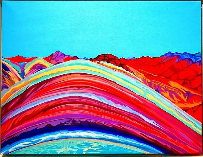 직선보다는 곡선을 추구하고 파도를 타는 듯한 리드미컬한 선율도 느껴진다. 그리면서 완성되는 무계획의 계획이 그림 안에 담긴다. 장혜진의 자연을 보는 순간, 우리는 그의 음색이 그림 안에 녹아있음을 쉬이 이해할 수 있다.