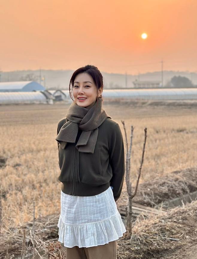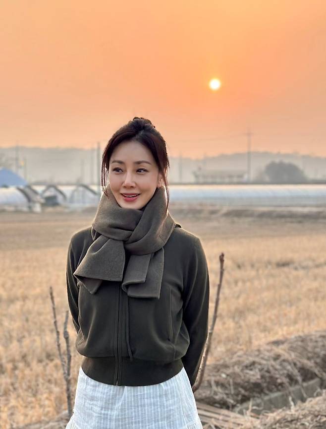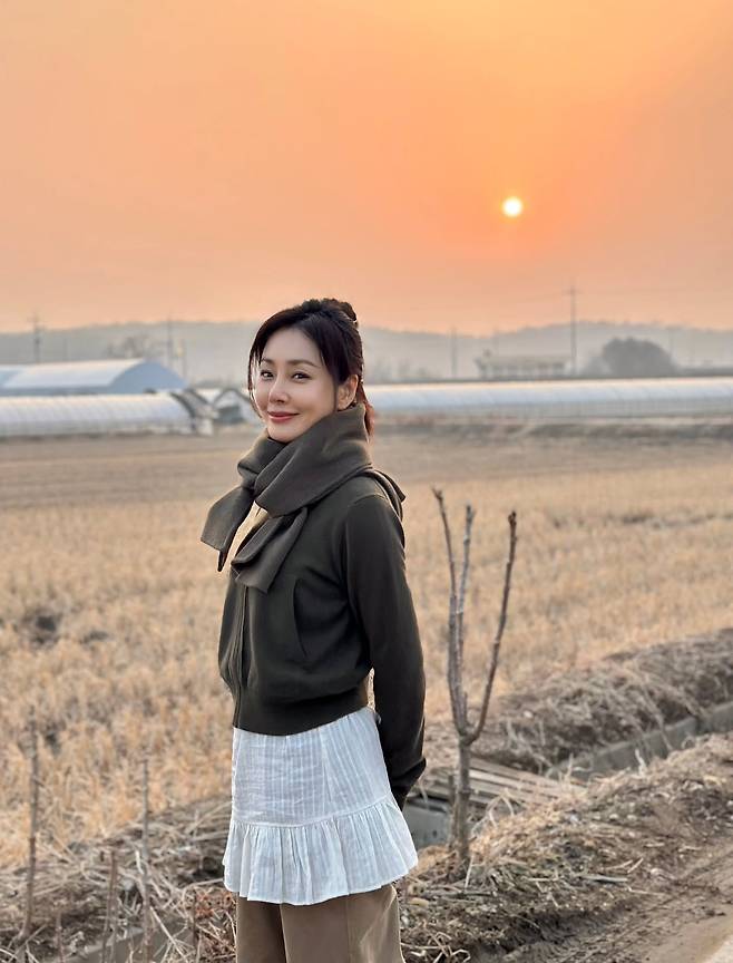 오나라가 해 질 녘 노을이 아름답게 물든 들판을 배경으로, 보기만 해도 마음이 따뜻해지는 우아한 근황을 전했어요.