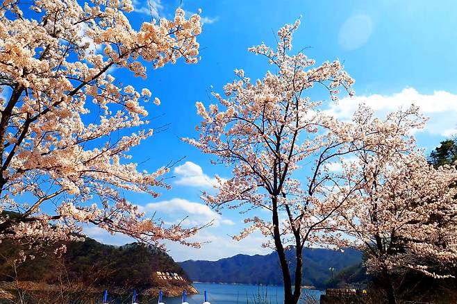 소양강댐의 매력은 벚꽃뿐만이 아니다. 댐 정상에 올라가면 소양호와 멀리 이어지는 산맥이 어우러진 멋진 풍경이 펼쳐진다.