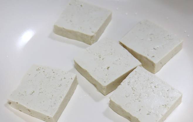 1. 두부는 먹기 좋은 크기로 도톰하게 썰어줍니다.