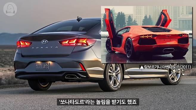 가뜩이나 엉덩이를 치켜들고 있는데 번호판이 범퍼 하단으로 이사를 가면서 외려 수치에 비해 폭이 좁아 보였고 이로 인해 차가 둔해 보인다는 것도 문제였습니다. 또 날렵해진 테일램프는 2세대 벨로스터에서 선보였던 'L자 그래픽'을 반복해 새겨 넣었는데 근본 없어 보이는 이 디테일이 람보르기니 '아벤타도르'를 연상시켜 '쏘나타도르'라는 놀림을 받기도 했죠. 왠지 설치류가 떠오르는 생김새 때문에 '뉴트리아'라는 별명도 있었어요. 참고로 트렁크 버튼은 이 'H 로고'의 가운데 윗부분에 숨겨져 있습니다.