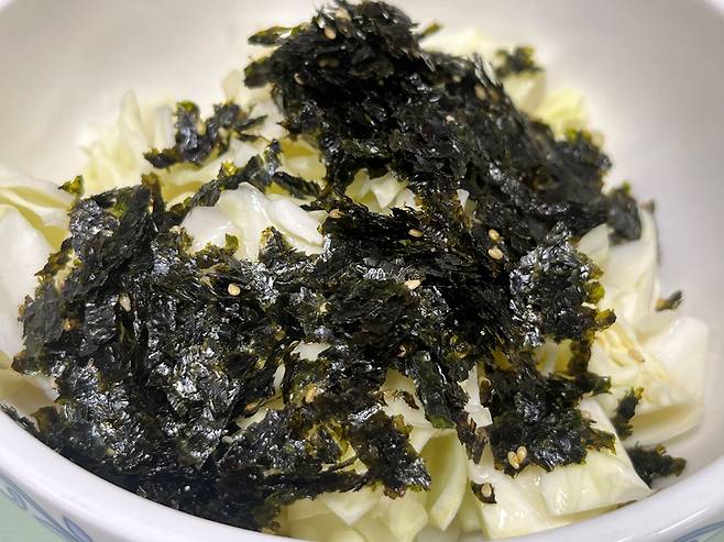 김, 깨, 참기름 등이 양배추와 잘 어우러지도록 섞으세요.
