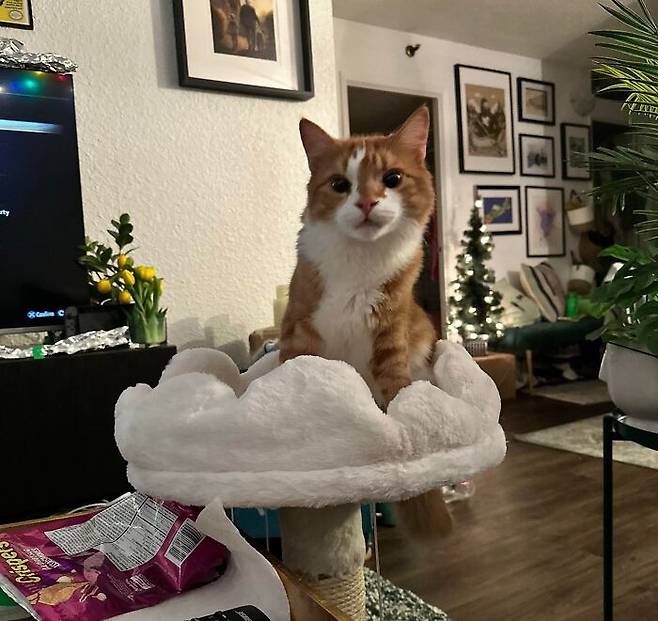 왕좌를 차지한 뒤 여유롭게 카메라를 응시하는 고양이의 모습 속에 오늘도 유쾌한 웃음이 넘칩니다.