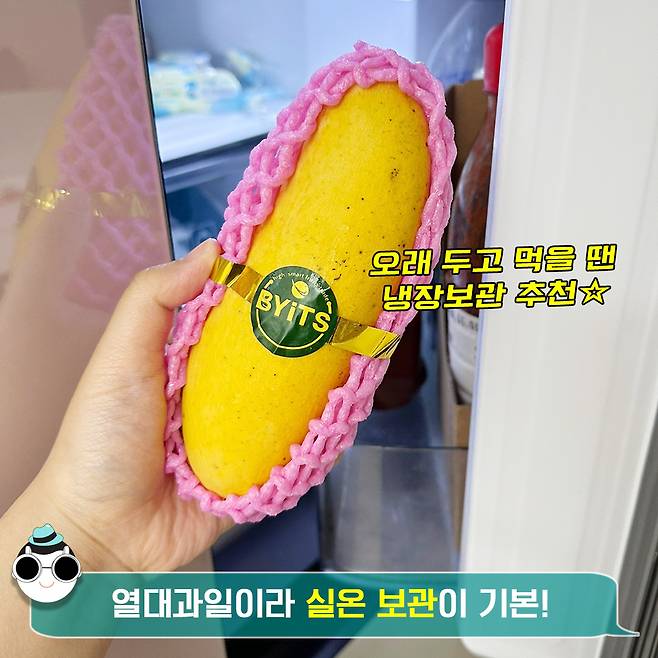 망고는 열대과일이기 때문에 보관할 땐 실온에 두는 게 좋아요.