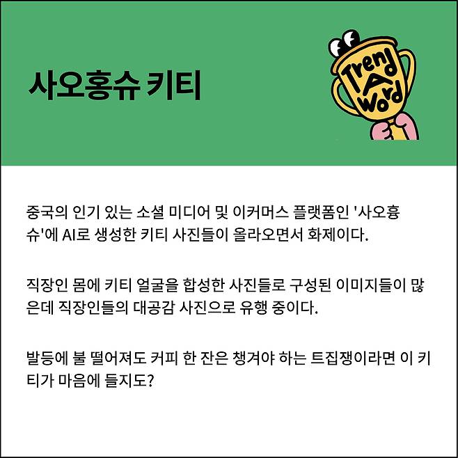 샤오홍슈에 올라온 키티짤이 화제가 되고 있다.