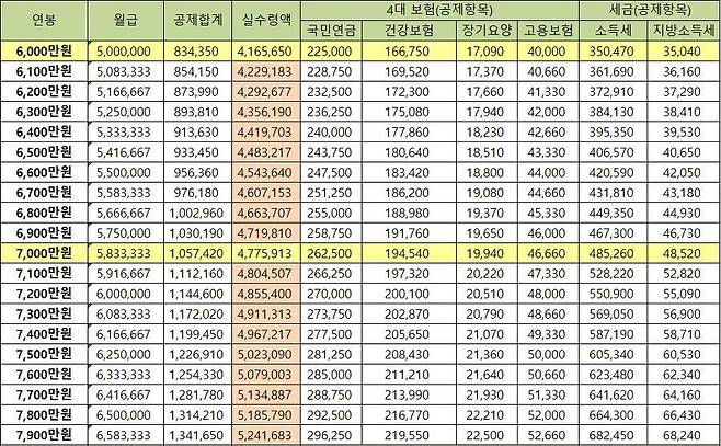 (์์ ๊ณต์ ํญ๋ชฉ: ์๋์ธ, ์ง๋ฐฉ์๋์ธ, ๊ตญ๋ฏผ์ฐ๊ธ, ๊ฑด๊ฐ๋ณดํ, ์ฅ๊ธฐ์์๋ณดํ, ๊ณ ์ฉ๋ณดํ)