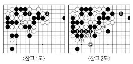 가볍게 젖힌 백80이 맥을 잘 짚었다. 어쩔 수 없이 흑81로 물러나니 또 차이가 벌어졌다. <참고 2도>로 흐르면 백 세력이 산맥을 이룬다. 84, 88로 뛰어 쉽사리 공격받지 않을 자세를 갖췄다.
