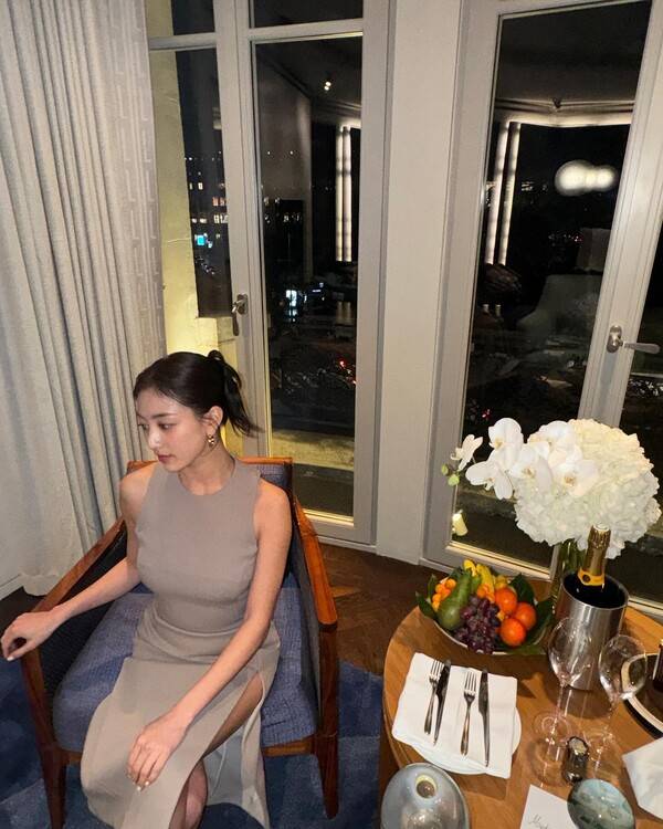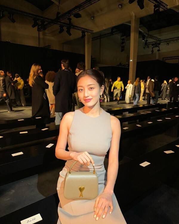 공개된 사진에는 지효가 파리에서 뉴트럴 톤의 슬림 드레스를 착용하고 발코니에서 포즈를 취하고 있는 모습이 담겼다. 깔끔한 업헤어와 레드 립, 볼드한 액세서리로 세련된 분위기를 연출했다.