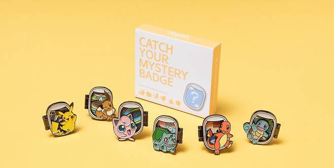 다음으로 '캐치 유어 미스터리 뱃지' 굿즈는 랜덤으로 만날 수 있는 포켓몬 경첩 뱃지로 피카츄, 파이리, 꼬부기, 이브이, 푸린, 이상해씨 등 인기 포켓몬 6종이 랜덤으로 들어있으며, 기내 창문을 형상화한 경첩으로 열고 닫는 재미까지 경험할 수 있다.
