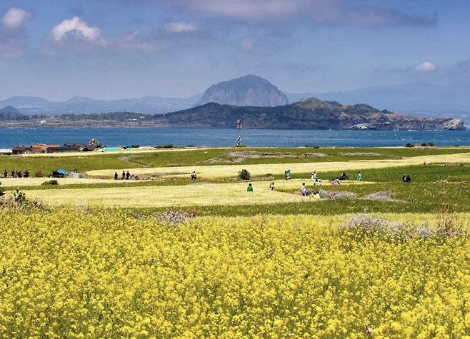 섭지코지 & 광치기해변: 푸른 바다와 노란 유채꽃의 대조가 환상적인 조화를 이루는 곳입니다. 넓게 펼쳐진 해안선을 따라 인파 속에서도 여유로운 산책을 즐길 수 있는 낭만적인 공간입니다.