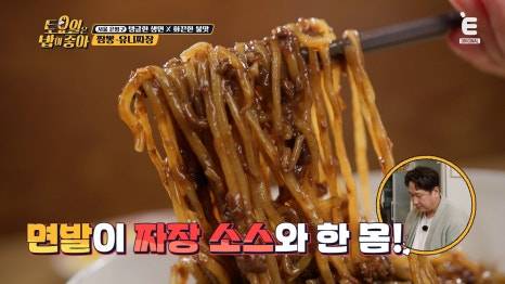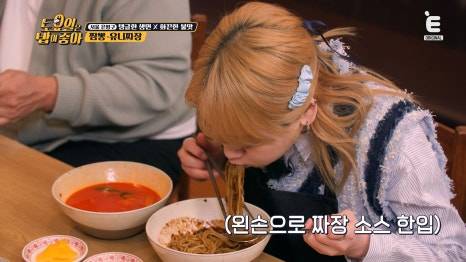 왼손으로는 짜장 소스 한 입!