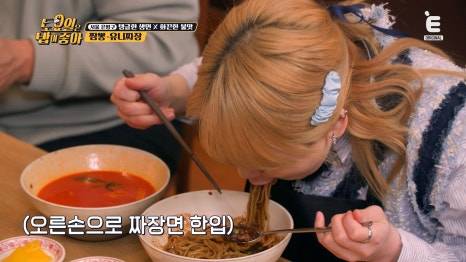 오른손으로는 짜장면 한 입!